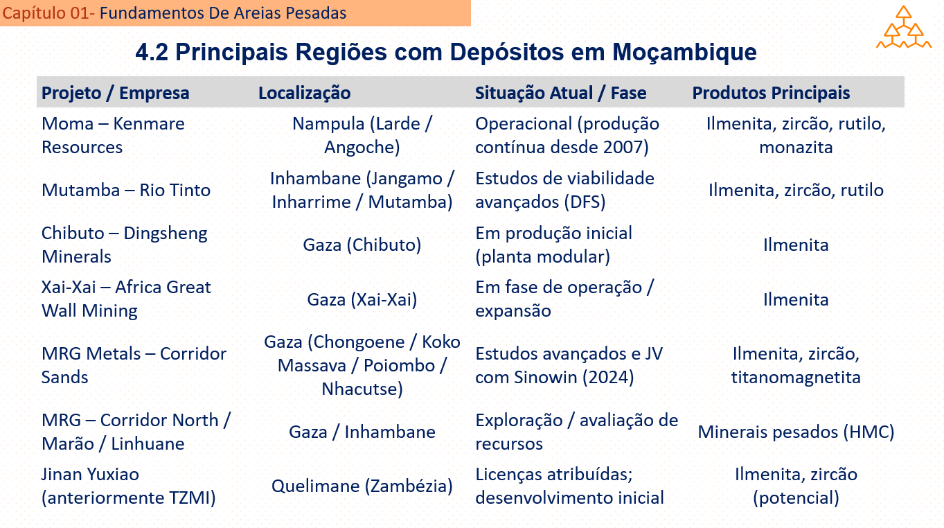 Apresentar aos participantes uma visão geral do setor de areias pesadas, destacando sua relevância econômica, as principais aplicações industriais dos minerais envolvidos e o funcionamento da cadeia produtiva, da extração ao mercado.