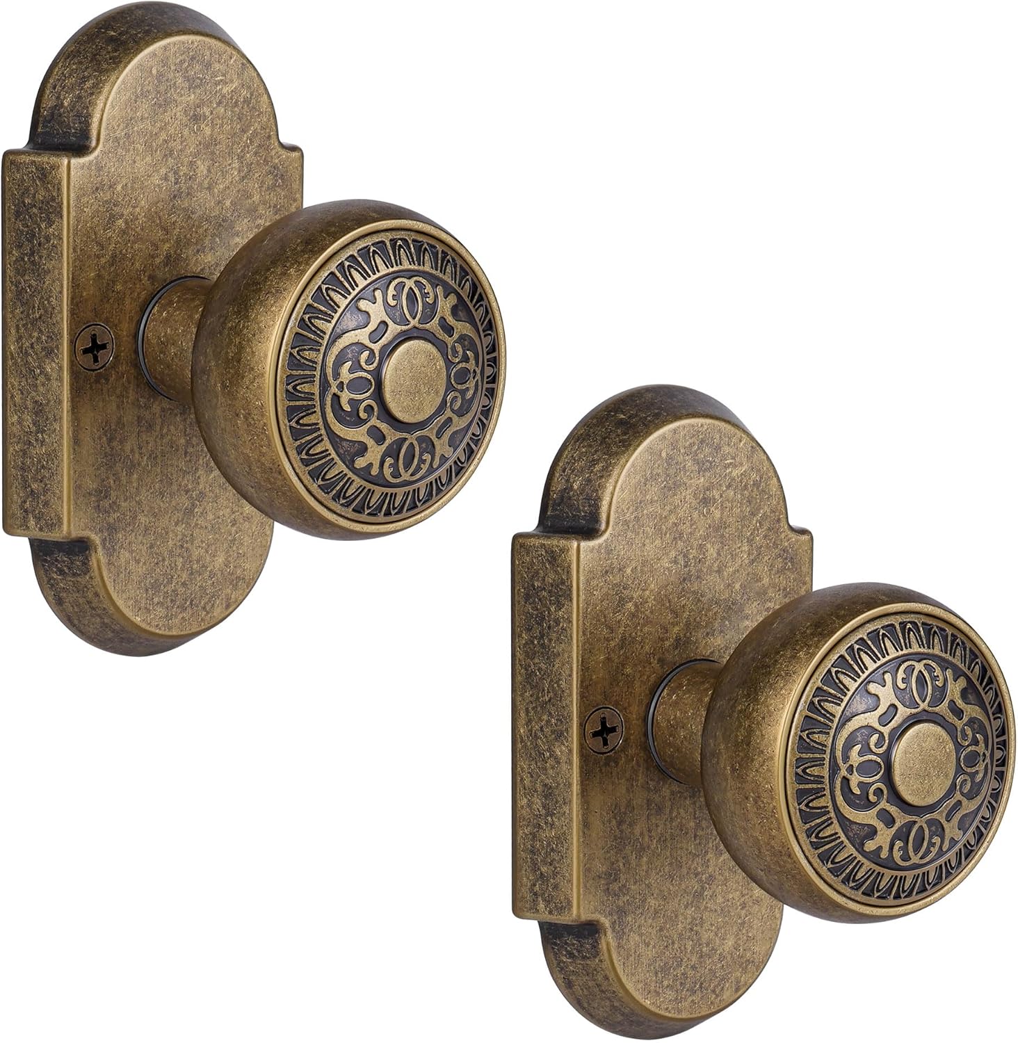 • 【Keyless】 Designed without a key. The antique brass door knobs comes with a push-button or thumb turn which allows the door to be locked. They can be unlocked from the outside by an emergency release with hex key.
