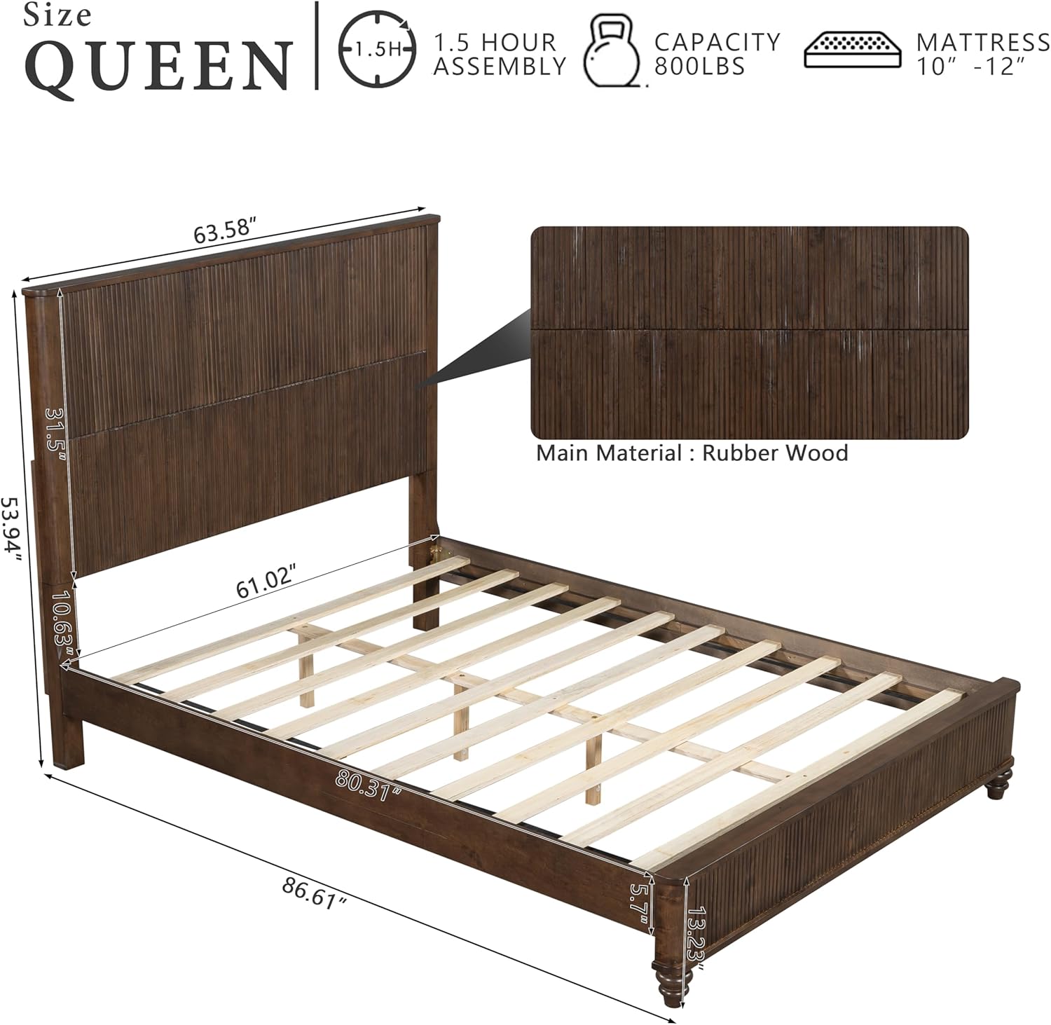 • Space Under Bed: 5.7" Wood feet provide sufficient space for storage and are also easy to clean, effectively improving the space efficiency of the bedroom