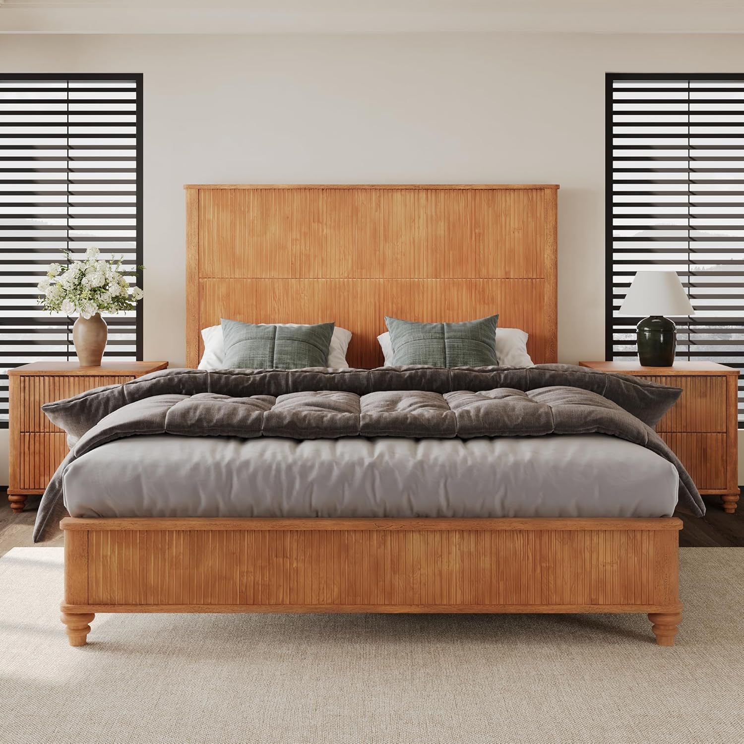 • Classic Design: 79.13" Solid Headboard adopted with horizontal channel splicing, simple and well-structured. Unique wood texture and natural color show exude charming charm