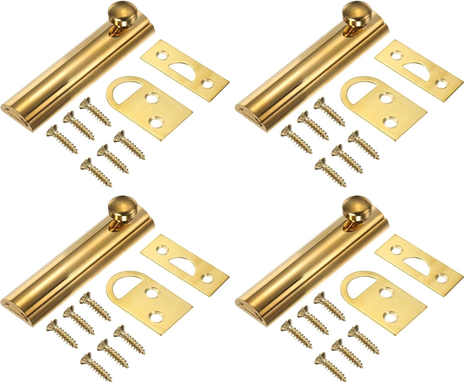 uxcell 4Pcs 6" Solid Brass Surface Bolt, Concealed Security Slide Latch Door Lock with Screws, Polished French Door Lock for Closet Cabinet Recessed Doors, Bronze